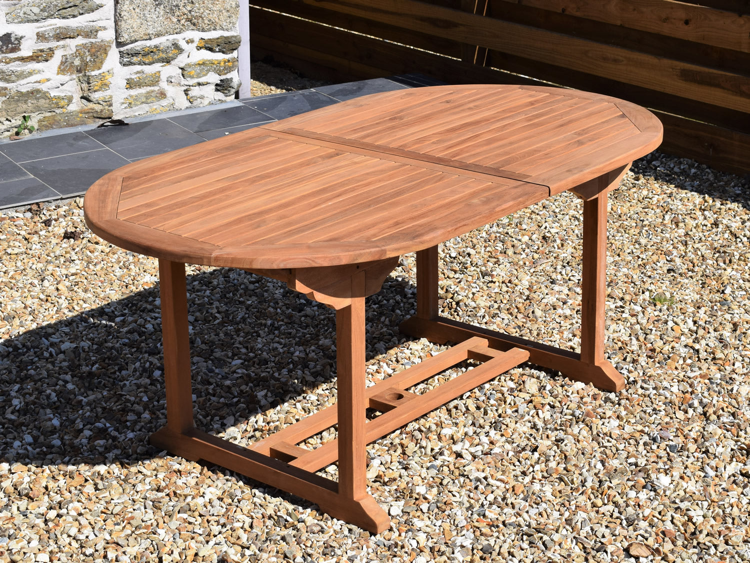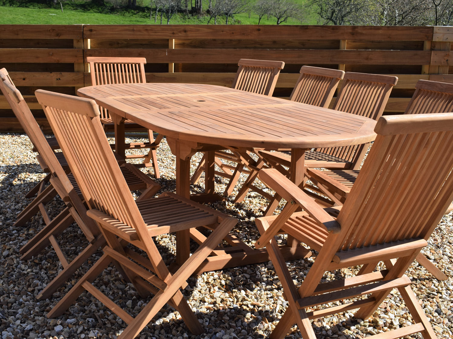 This beautifully crafted solid Teak Oval 8 Seater Outdoor Furniture Set is part of our garden dining range. It is classically styled with a fine sanded finish using traditional joinery techniques, and perfect for entertaining on your decking or patio. The flexible seating arrangement will comfortably take up to 8 chairs around the extending oval table.