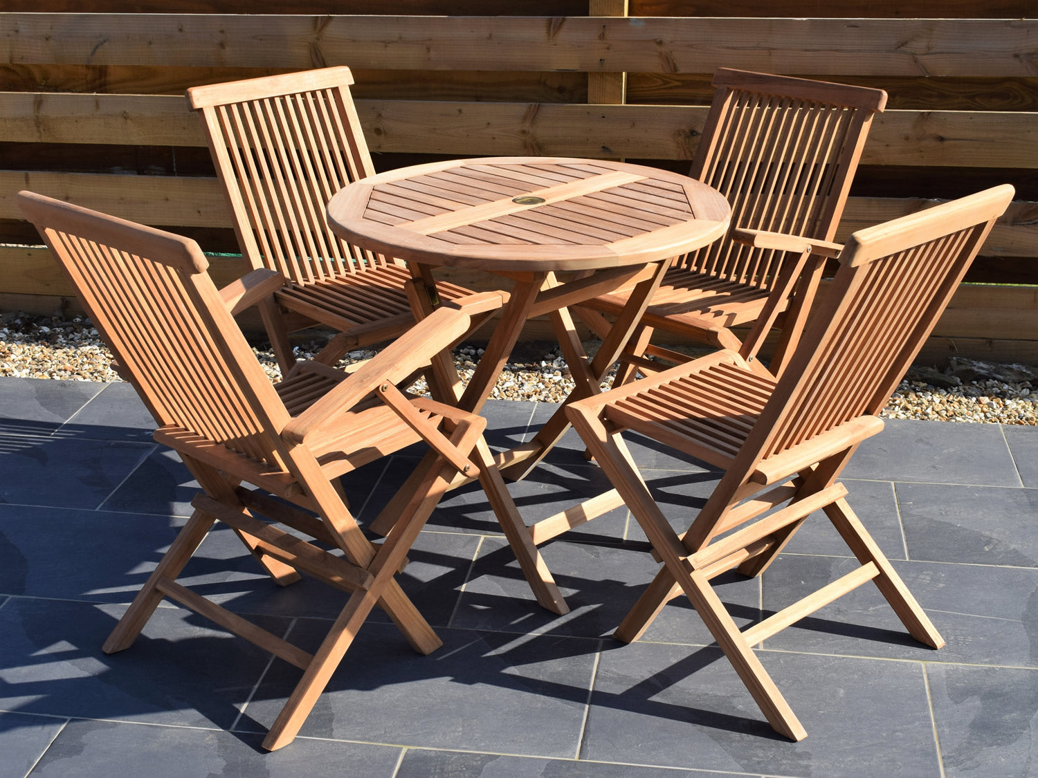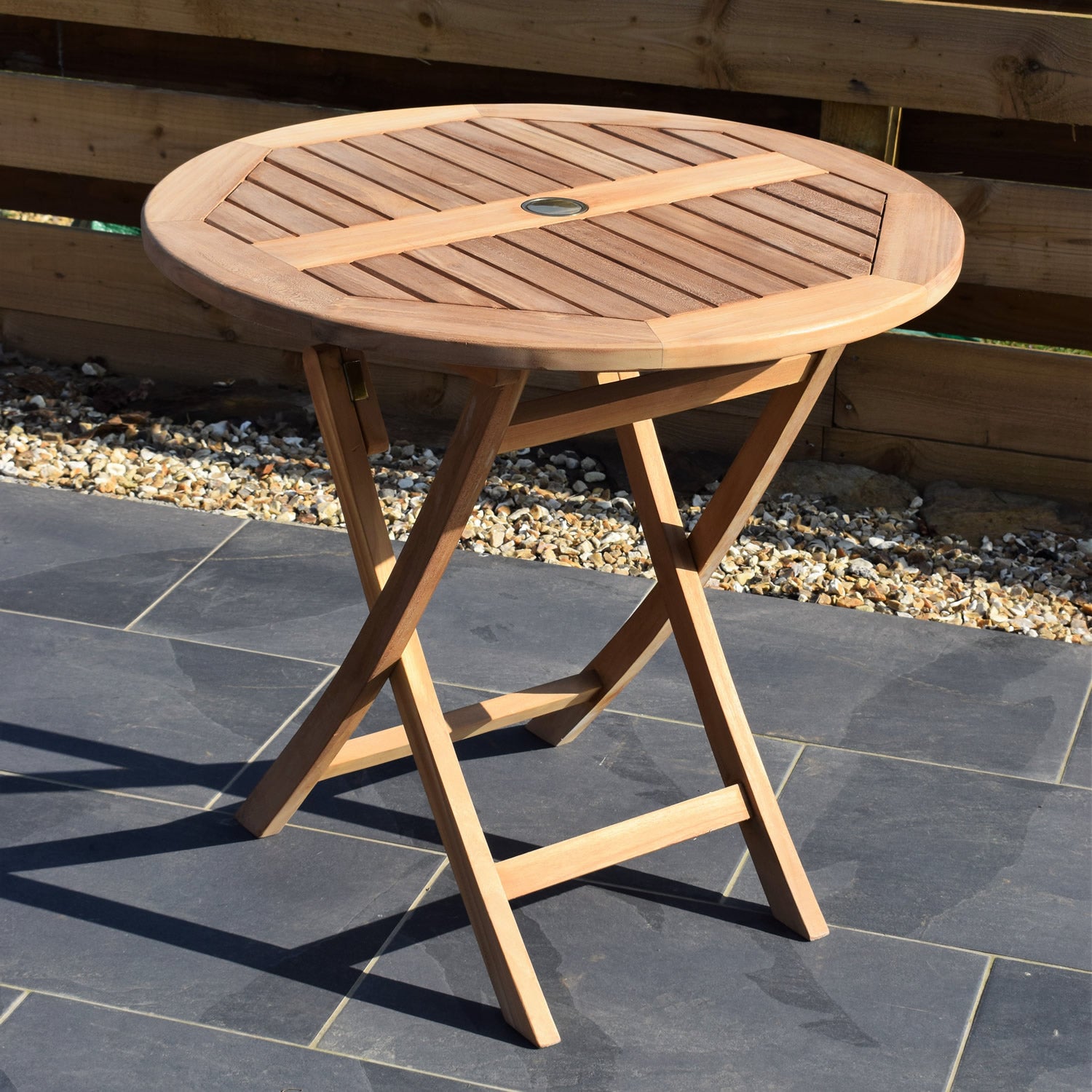Part of our garden dining range, this classic teak round 80cm folding table is perfect for a balcony or a small patio. The practical, folding design is ideal for when space is limited as it can easily be folded away when not in use. The perfect size to seat up to four, it can be paired with any of our teak dining chairs to create your own compact outdoor dining set.